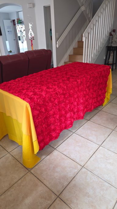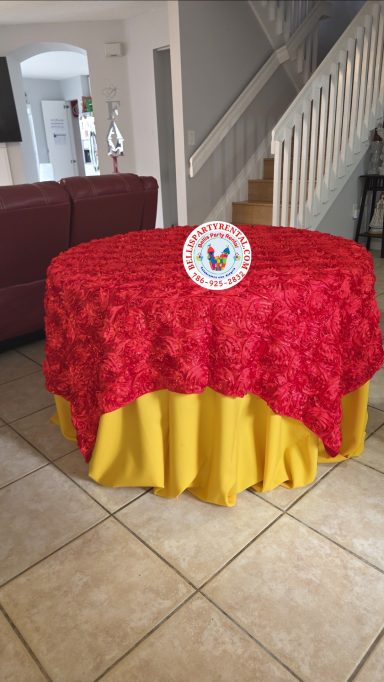 OFRECEMOS UNA AMPLIA VARIEDAD EN MANTELERIA DE TODOS LOS COLORES PARA MESAS REDONDAS, RECTANGULARES Y DE COCKTAIL, SERVILLETAS Y LAZOS PARA SILLAS