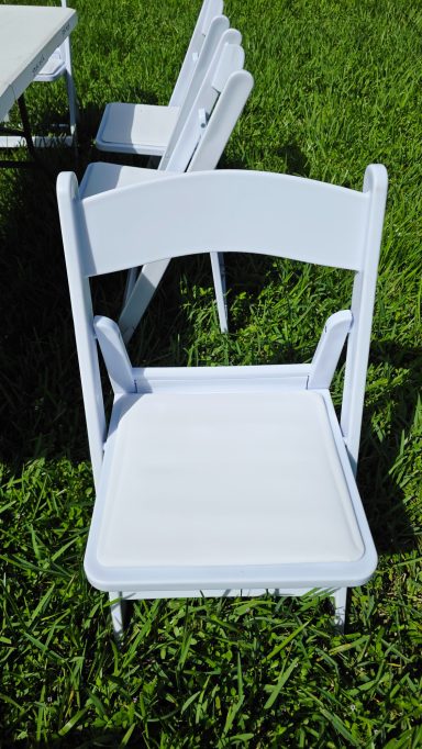 OFRECEMOS SILLAS BLANCAS PLEGABLES SENCILLAS Y SILLAS BLANCAS ELEGANTES DE RESINA CON COJIN